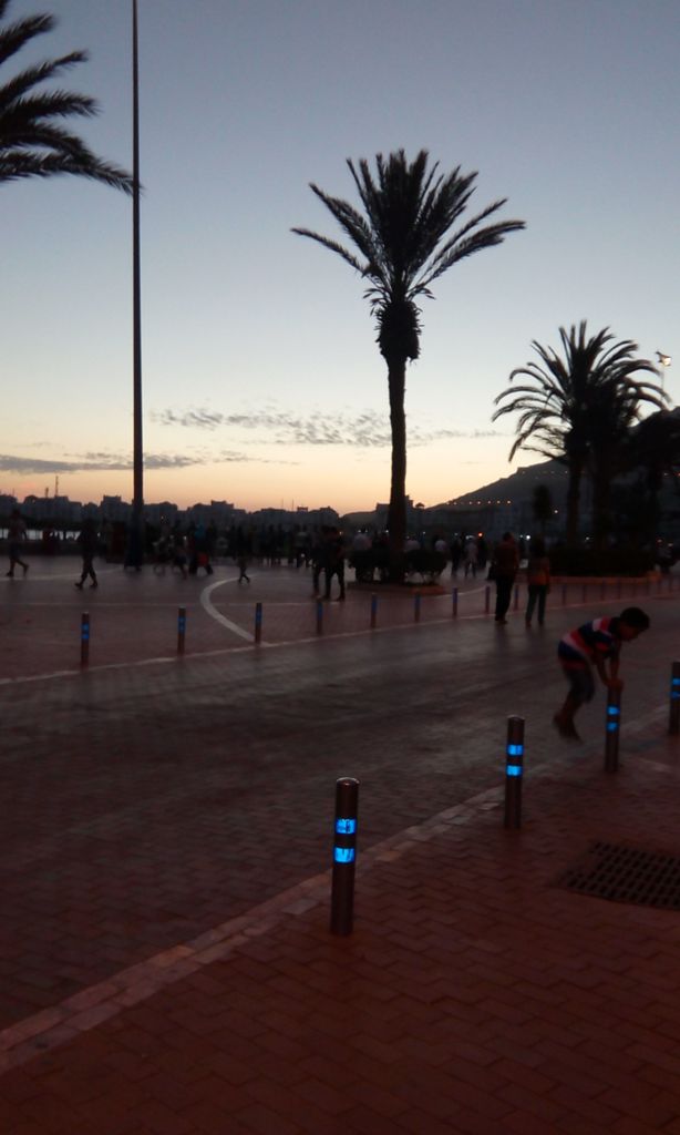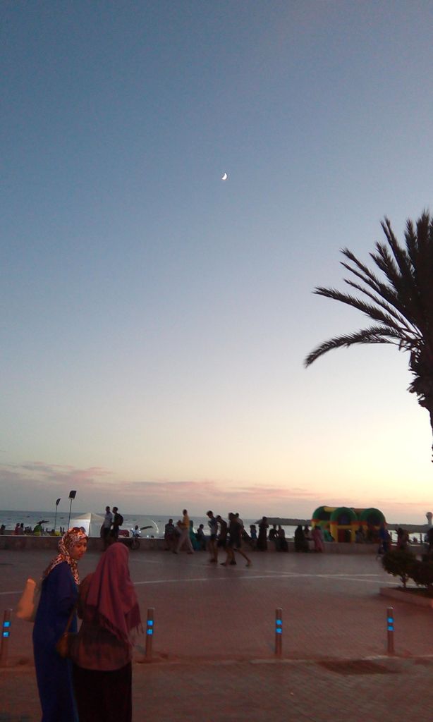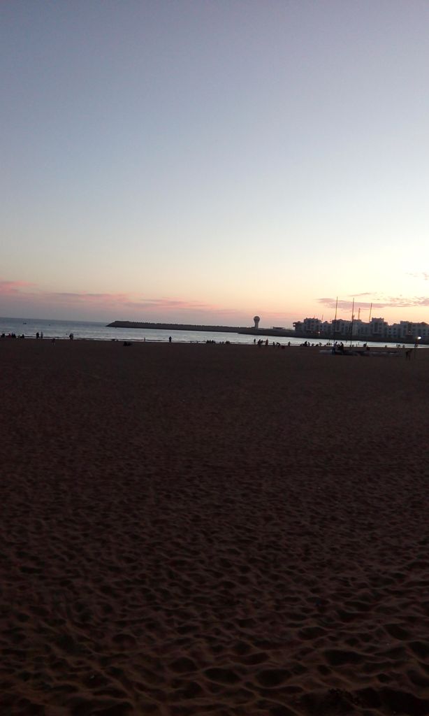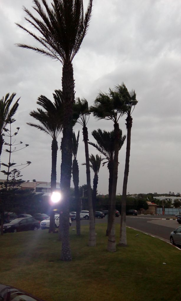 Выходя из самолёта, который летит 6 часов из Москвы, тебя сразу окатывает жаркий воздух Африки. Не смотря на ночное время. Вообще погода в Марокко очень непредсказуемая. Может до обеда стоять туман, может в 7 утра уже светить яркое солнце. Но утренних туманов всё же больше. И если обобщить: солнце появляется около 11 утра. Но даже в это время можно "сгореть" на пляже. Потом из тумана осторожно выходит солнце и светит до конца дня, пока не скроется за горизонтом. Закаты в Агадире очень красивые. А луна очень маленькая.