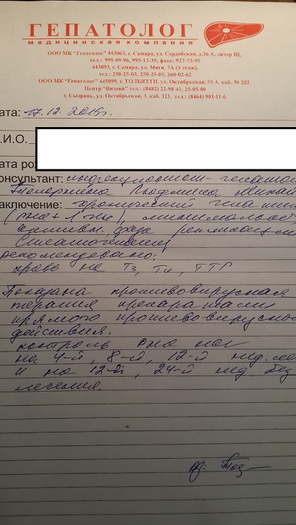 Жил был я, 35 лет отроду. Жил не тужил учился, работал, детей воспитывал, жену растил или наоборот). И в один прекрасный воскресный день, после бани хорошо попарившись подумал а не пройти ли мне медкомиссию :trollface:, прям в бане и начал нашел тонометр и перед. Почему спросите вы, вдруг? А я скажу...работаю я индивидуальным предпринимателем (грузчик там, директор, все в одном лице), никакого проф досмотра, осмотра и прочих прелестей в принудительном порядке у меня нет, и в больнице я был последний раз в военкомате, лет 20 назад (стоматолога, слава нашему городу химии, посещаю регулярно, как в детстве, что в садике, что в школе в сентябре всех водили группами к нему на осмотр при ссср). Отвлекся извините. Так вот собрался я к терапевту (ходил в медгард, тк в обычную поликлинику я пришел простоял 30 мин и понял то посетить мне врача с той скоростью очереди предстоит не раньше чем дня через 3 ), сходил.....направил он меня на анализы :gram: , столько крови с меня еще ни разу не брали....да и не брали ни разу :trollface:. Сдавал на все что можно и нельзя вплоть до онкологии, ну в первый раз и все такое. потом узи брюшной полости, щитовидной железы, почек, кардиограммы и итд (тоже кстати в первые :yes: ). Прошел все и пришел обратно к нему, он на все это хозяйство (документооборот как у бабули моей все сложил в папочку) глянул и направил для начала к гастроэнтерологу. Врач, тетушка возраста за 50 мгновенно нашла у меня много чего интересного....жировой гепатоз, подозрение на панкреатит (посадила на диету №5 и с тех самых пор не ем и не пью), и опять назначила кучу анализов :trollface: хелак тест, ФГДС, и гепатиты а б с е. Вот как получил я данные анализы (про гепс) с тех пор и несплю :276: в прямом и переносном смысле. Начал искать куда податься, что делать, кого искать кому отдаться на ПВТ, и слава богу нашел данный формум!. Теперь стало понимание с чего начать и что делать спасибо Вам :head: .