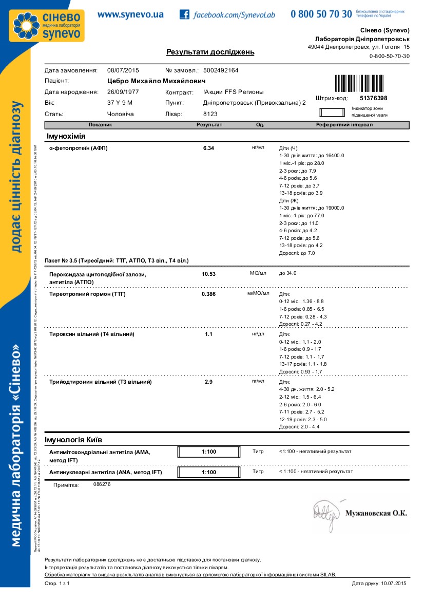 25.10.2016 Синево АФП, ОАК и печеночный комплекс