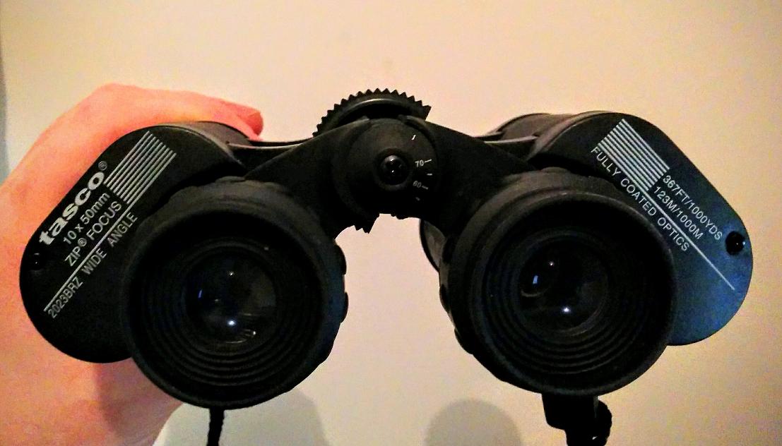 Tasco 10x50, обычный туристический, с просветленкой, 123/1000м. В театр, конечно не потащишь, но в походы и водные прогулки самое то.