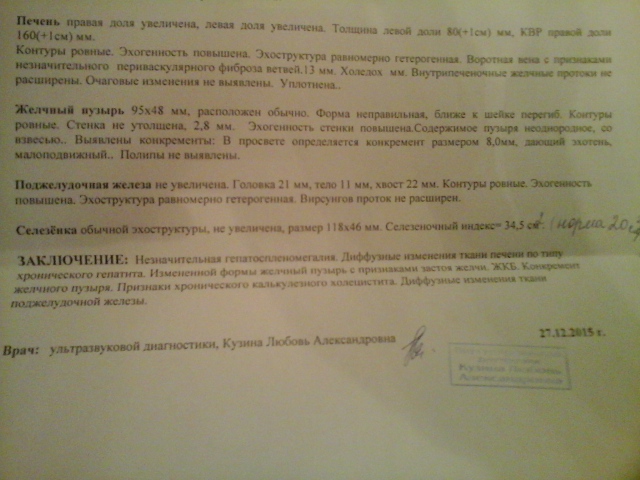 Мне сделали УЗИ,а так же биохимия и пр.,т.е. что врач назначил.Мне 20.01 только повторный визит,анализы все на руках,вот и смотрю в них-и не понимаю,но что-то предварительно узнать-то хочется.