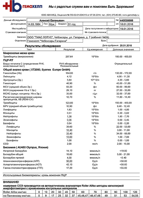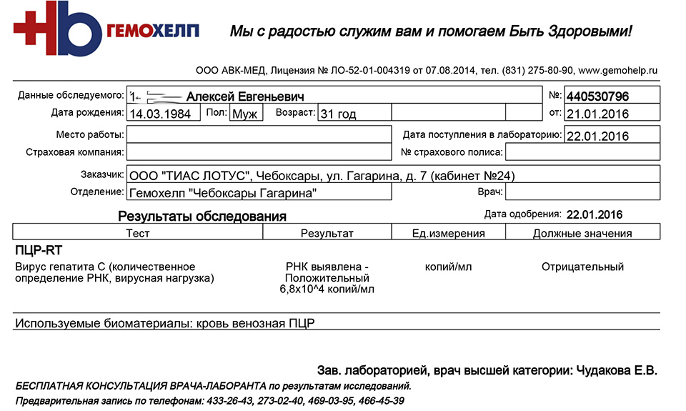 Записавшись к врачу и подождав месяц очереди, я попал на прием к гепатологу в городе. Подумав, он хотел мне назначить лечение пегасис + ребавирин, но в связи с моими финансовыми трудностями назначил мне лечение 48 недель пегинтрон + рибавирин. Приобрел я курс лечения, меня положили в больницу под наблюдение, сделав два укола. На 4 неделе рнк показала что гепатит присутствует в крови, я продолжал лечение. Сдавать рнк я пошел на 12 неделе и показался мне свет в конце тоннеля - гепатит с отсутствовал в моей крови. Эти 48 недель длились долгим ужасом для моего кармана и моего состояния, ну вы сами знаете. Стресса добавил доллар и пегинтрон подорожал в два раза, остатки я покупал по двойной цене. И вот наступил тот день когда прошло лечение, я сдал анализ, РНК с отрицательным анализом. Счастью не было предела, но через 12 недель после окончания лечения, т.е. сегодня мне выдает, что вирус гепатита присутствует в моей крови, буду сдавать на количество, т.к. сдавал только качественную пцр, потому что надеялся, что он у меня отрицательный.