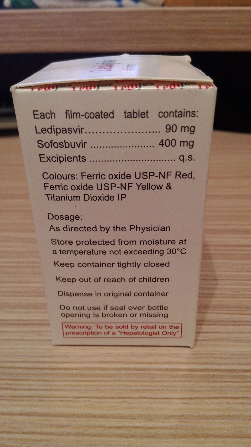 Лекарствами помог lokomotiv, за что честь ему и хвала! Пришло все очень быстро даже быстрее чем показывал трек)) И ценник приятно порадовал - Ledifos на 12 недель обошелся всего 960$ Схему выбрал Ledifos + Рибавирин но последний пока находится под вопросом, так-как схема с одним только Ledifos при моих данных обследований тоже должна показывать очень хороший результат. Буду писать здесь о своем лечении. Надеюсь вскоре победить этот вирус :a: и вновь стать здоровым!