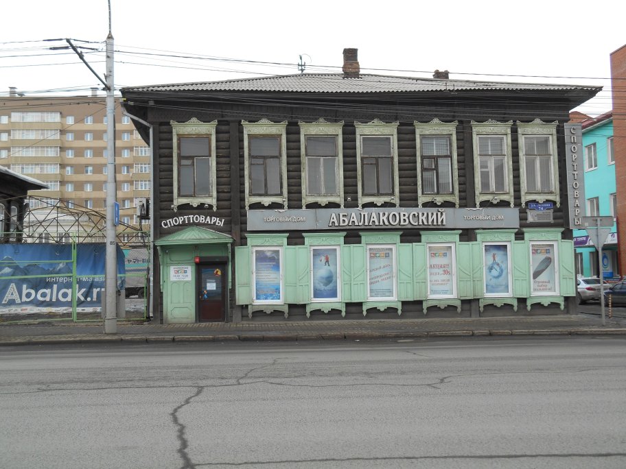 Сам магазин Абалаковский: дом, в котором в 1907—1925 годах жили советские альпинисты-исследователи братья Виталий и Евгений Абалаковы, ул. Ленина, 74