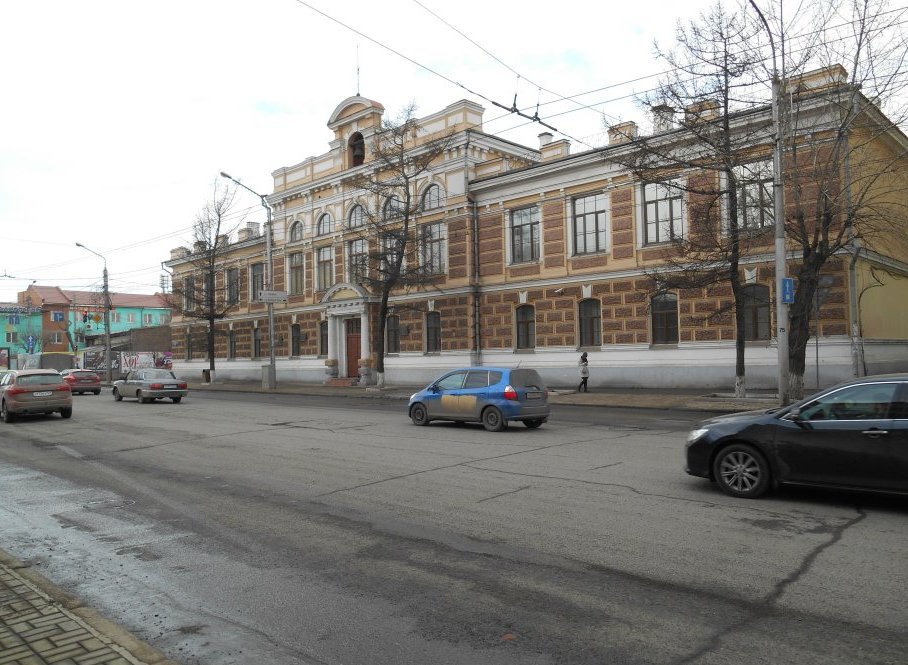 Дальше мимо серого советского модерна и снова видим что-то старенькое. Дом на реставрации, к лету будет нарядным. Это Почтамт (остановка так и называется ГлавПочтамт), ранее Дом народной связи, а до революции – доходный дом крестьянина Дегтярёва (арх.Соколовский, 1909-1911). Нехило так жилось сибирским крестьянам при ужасах царизма однако!