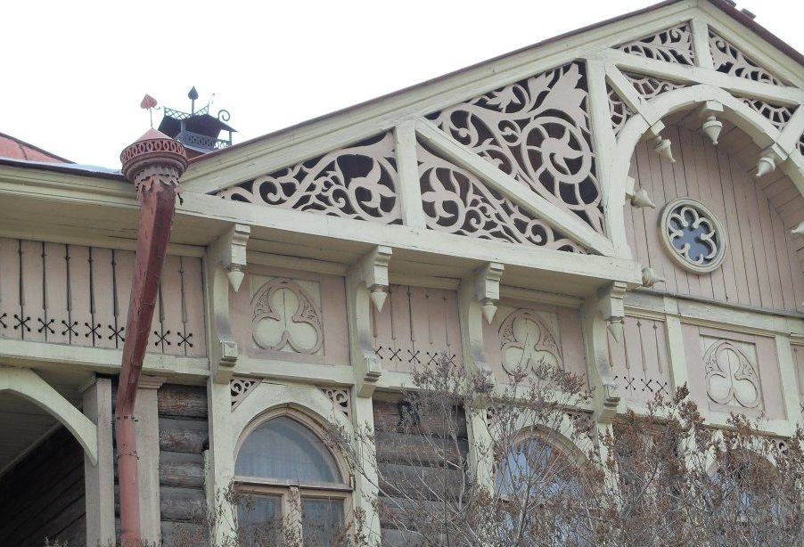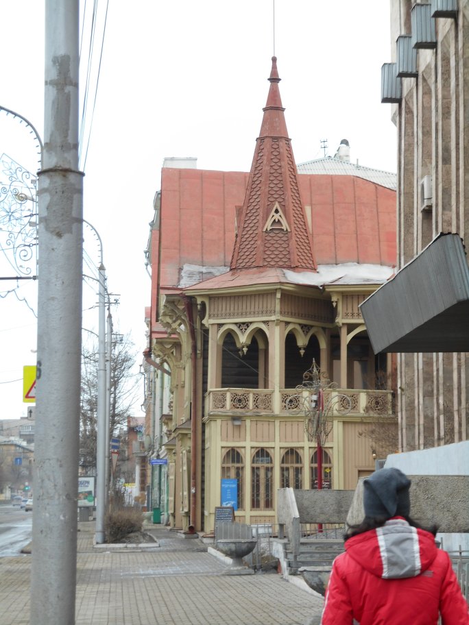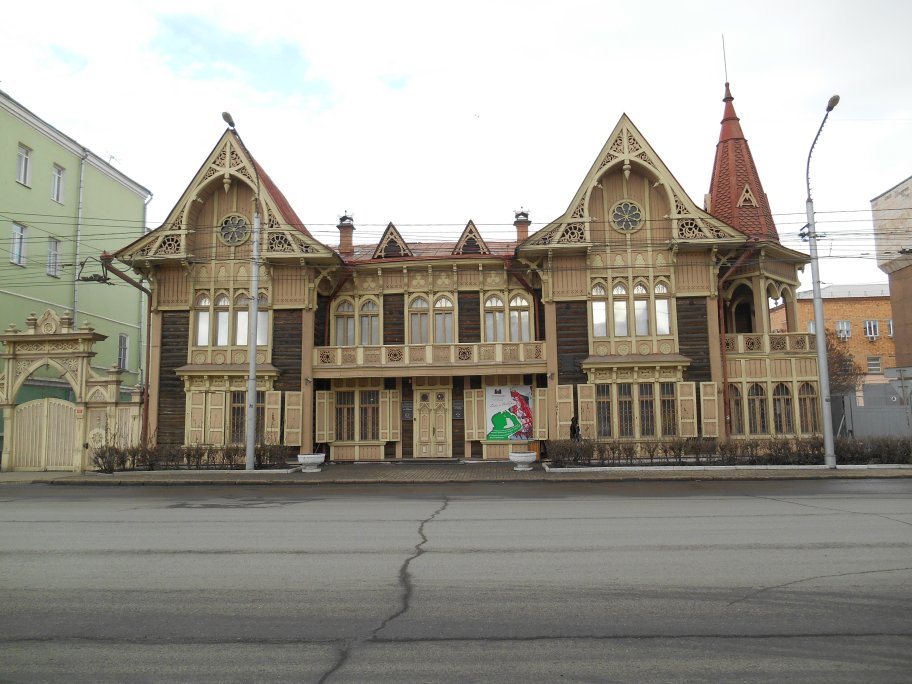 а вот дальше проглядывает супер-домик, весь в кружавчиках – видите? Это литературный музей им.Астафьева. Сейчас. Но у дома долгая история – построен ещё в 19-м веке и хозяева были не простые. По слухам в 40-х в этом доме находили клад с сокровищами, а в 50-х склад старинного оружия.