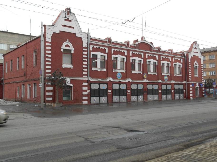 Это пожарная часть №1. Действующая. Кроме того, на территории этой пожарной части есть музей пожарного дела. Не для открытого посещения, но организоваться туда с экскурсией можно.