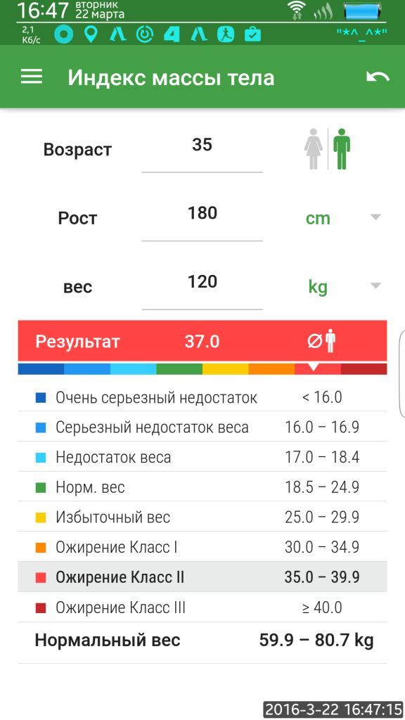 Ваш нормальный вес 60 - 81 кГ согласно росту и возрасту! У него ИМТ = 37. Это есть ожирение класc II.