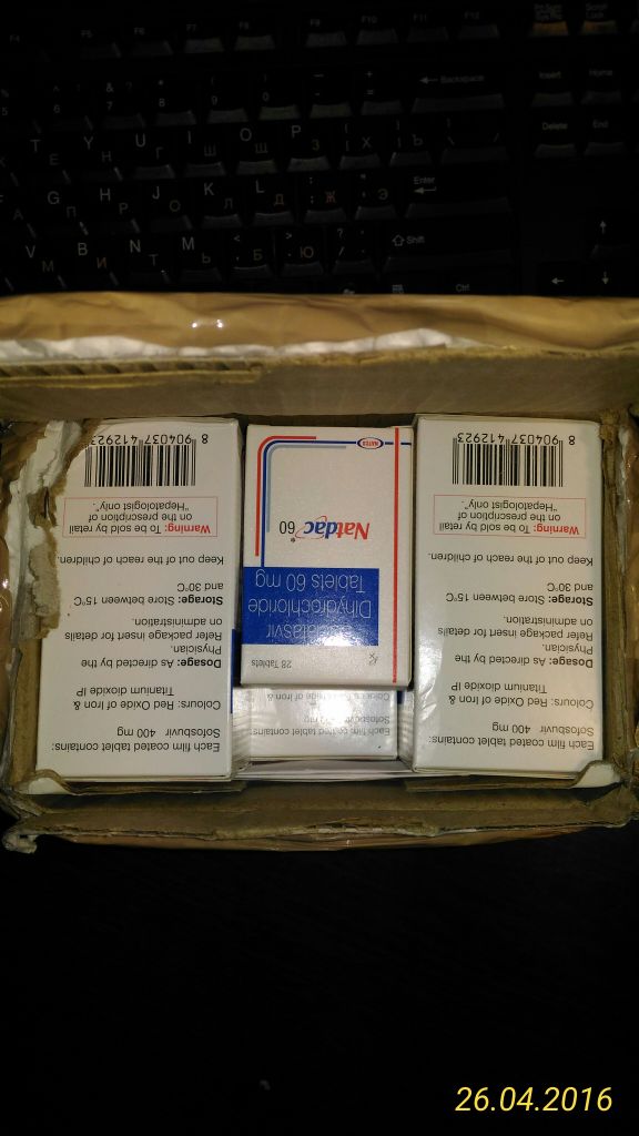 Элла, Большое спасибо за приобретение и отправку препаратов Софосбувир и Даклатасвир на двенадцати недельный курс лечения! Посылка пришла ровно через две недели после отправки, в идеальном состоянии, все препараты целые без вскрытия и повреждения. Ещё раз СПАСИБО!!!