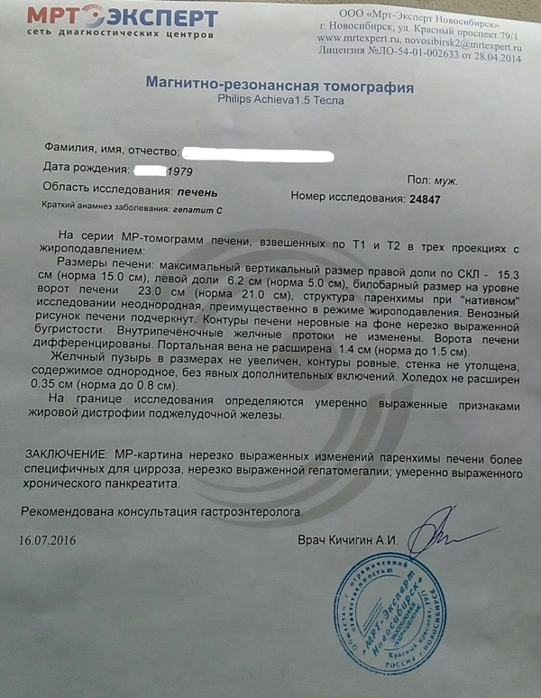 . На приеме он у нее спросил про новые препараты, та сказала что они типа не зарегистрированы в России, поэтому не имеет права их выписывать. Что назначит неизвестно, но сказала что препараты тоже хорошие до 90% выздоравливают. Рекомендаций пока никаких не дала, сказала ждет с результатами анализов. Сейчас выложу наши обследования, хотелось услышать мнения тех кто что-то понимает в этом, насколько запущен цирроз? Сам гепатит как мы полагаем бушует уже лет 15((( У мужа избыточный вес, при росте 179 весит 120кг. Я сдала маркеры- отрицательно, нужно ли еще что то сдавать (пЦР например)? Еще сына не проверяла, но почему то уверена что он здоров (на этой неделе его проверим).