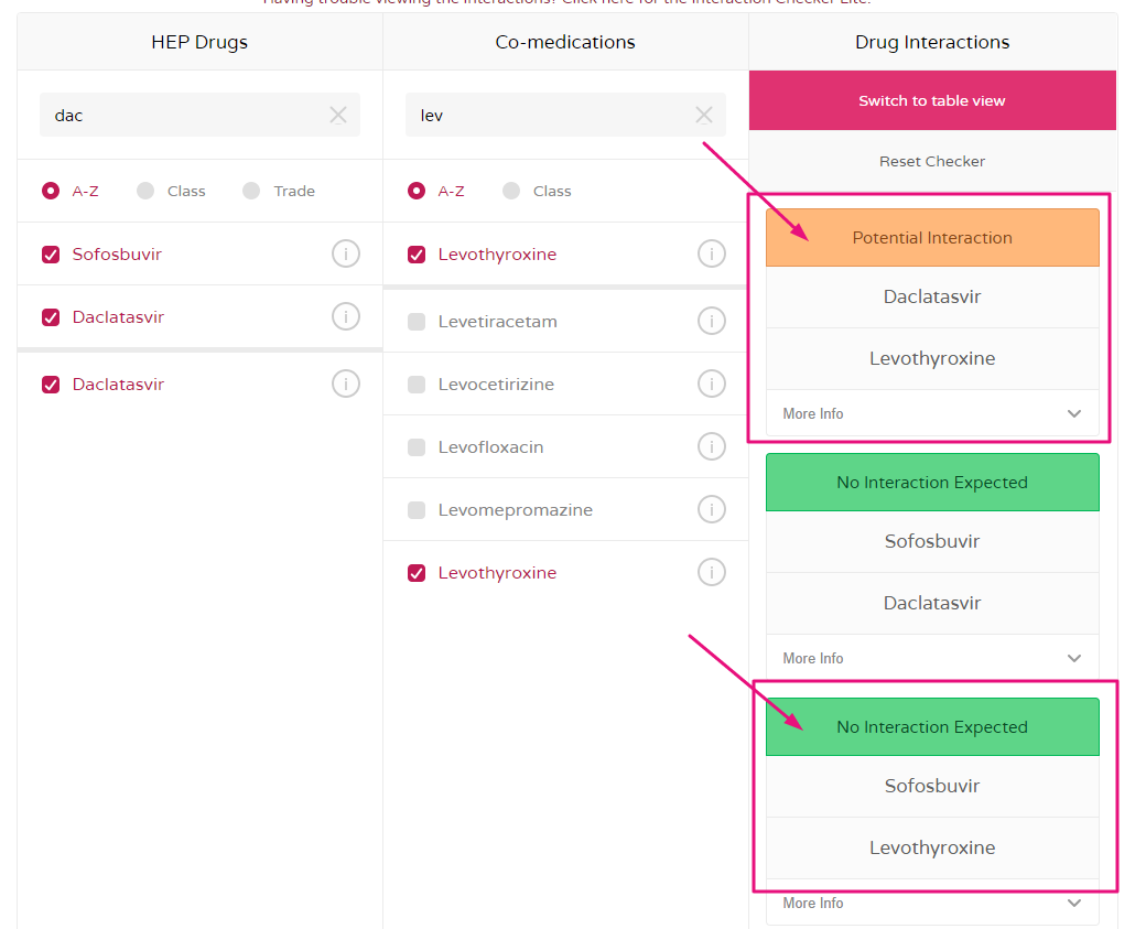 По поводу совместимости лекарств довольно просто. [url=http://hep-druginteractions.org/checker]Тут[/url] в левой колонке вводите Sofosbuvir и/или Daclatasvir, а в правой вводите действующее вещество (не путать с названием) проверяемого на совместимость лекарства. В вашем случае, в "Эутирокс" действующее вещество - Levothyroxine. Как видим, в обоих случаях взаимодействие не изучалось, однако с Софосбувиром взаимодействие не ожидается или не может быть клинически значимым, а с Даклатосвиром ситуация неоднозначная.