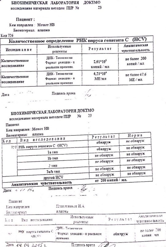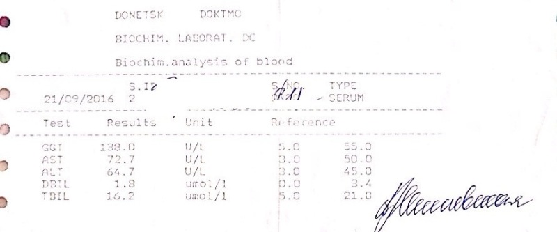 Фиброскан 08.2015 (11.0 КПа ) 01.2016 (10.4 КПа, 07.2016 -7,9кПа