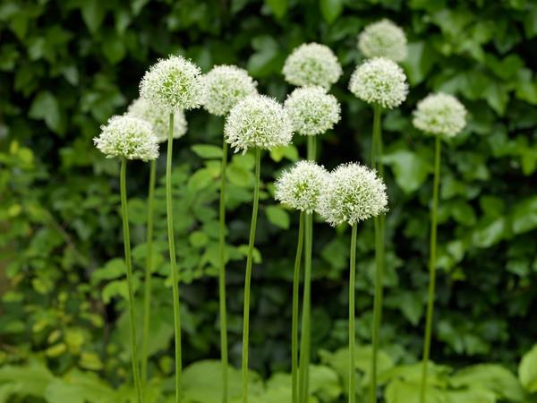 Лучше всего аллиум сочетается с пионами, ирисами, шалфеем, маком, дельфиниумом и люпином. Декоративный лук — довольно частый гость в букетах, поскольку очень долго сохраняет благородный внешний вид.