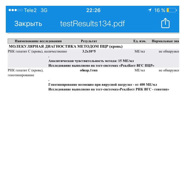 Всем привет. Совсем недавно случайно, попав в больницу, узнала, что у меня гепатит С. Последний раз анализ на геп С сдавала в январе 2016 года. Похоронив себя 78 раз, бегом стала сдавать анализы дополнительные. Понимаю, что сейчас напишу банальные вопросы, но сколько форум не читаю, пока все равно смутно понимаю, что делать. Форум обнадежил, умереть вроде не должна))) Пытаюсь шутить, но на душе просто леденящий ужас. Более опытные ребята, расшифруйте, пожалуйста, мой анализ. Сейчас принимаю антибиотики, другие анализы буду сдавать после окончания приема. К гепатологу хочу пойти уже со всеми результатами. И ещё такой вопрос, тут многие лечатся дженериками, подскажите, пожалуйста, клинику в Москве, где врач может их прописать. И, если можно, лабораторию, где можно не очень дорого сдать анализы (понимаю, цена=качество, но с деньгами совсем напряг, тем более если потом лекарства покупать). И совсем уж наивный вопрос, если я могла заболеть геп с примерно в течении года, каковы мои шансы полностью вылечиться? Спасибо всем откликнувшимся и всем выздоровления.