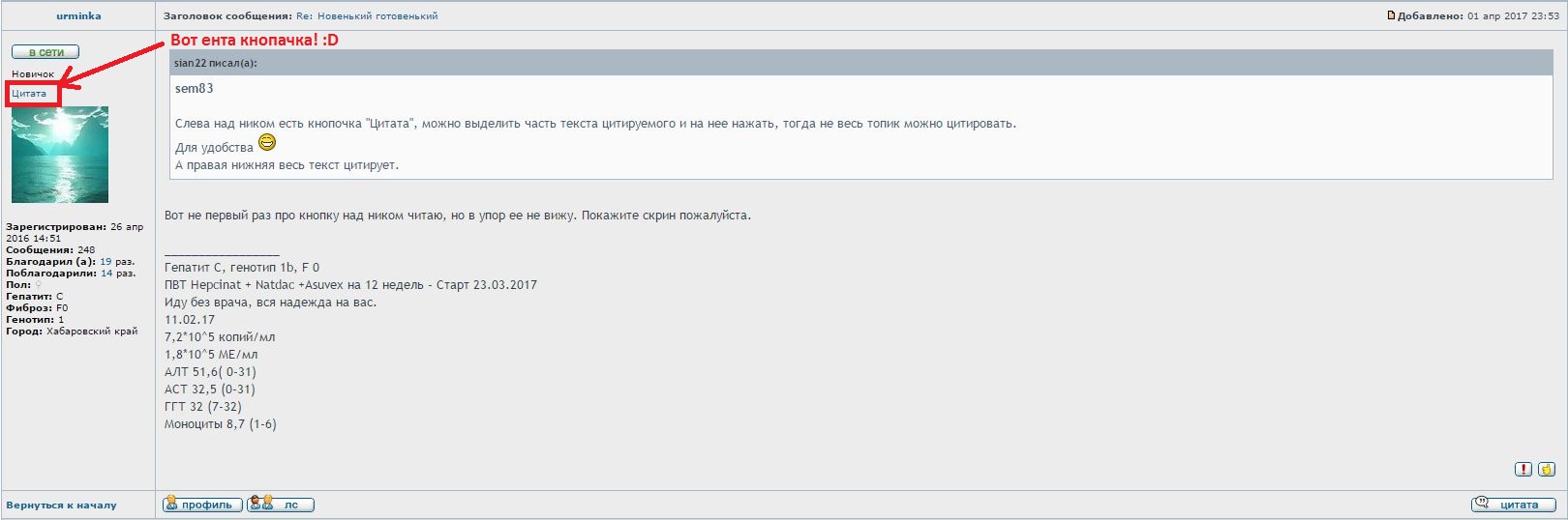 Вот не первый раз про кнопку над ником читаю, но в упор ее не вижу. Покажите скрин пожалуйста.sian22 писал(а):sem83