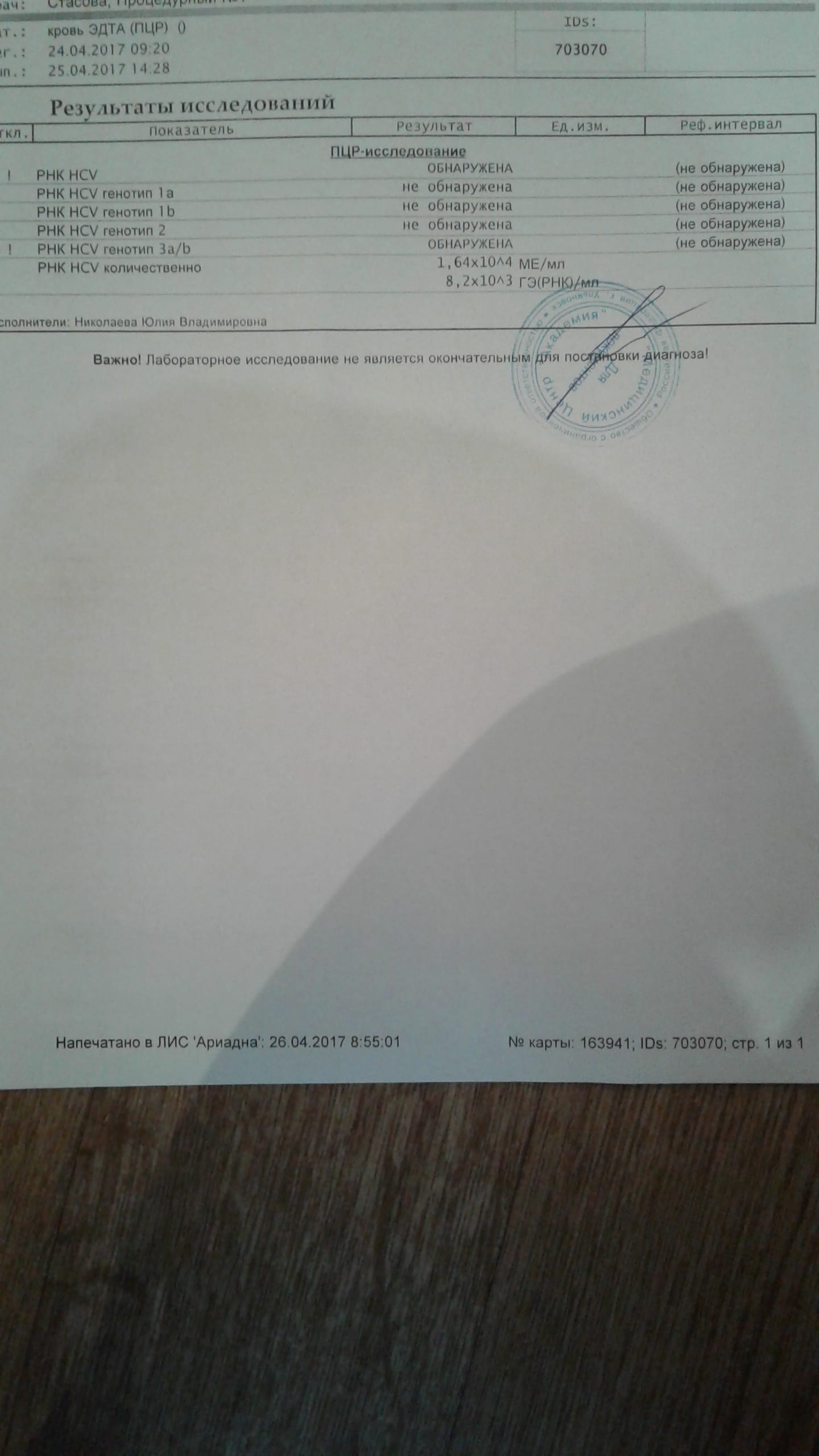 Вирусная нагрузка низкая. Генотип 3а/в. Больше ничего пока сказать не можем.