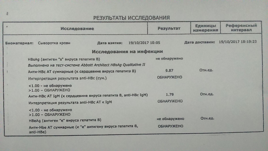 Спасибо! Ваш ответ мне очень помог! Большинство так и не поняли сути вопроса. Он был про медленное снижение фермента, а они мне говорят про анти HBs, но откуда ему появится, если я лежу в больнице с ОСТРЫМ гепатитом Б. Врач сказал, что бессмысленно сдавать все эти маркеры сейчас, поскольку я нахожусь в острой стадии. Разумеется, что они будут присутствовать в самом расцвете сил и лишь через 3-6 месяцев можно будет говорить о выздоровлении или хронизации. Как сказал врач, что можно и не сдавать все эти "анти". Главное, чтобы ушел сам HBsAg.Вот_такая писал(а):Я лежала с женщиной с острым Б и мужчина был рядом.