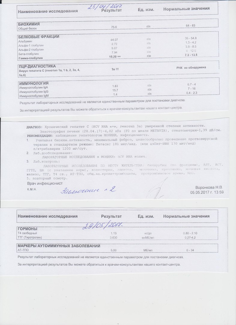 Начну с начала. В конце прошлого года узнала об этом диагнозе, откуда чего взялось можно только догадываться. Скорее всего получила подарок в больнице после ДТП( - это 4 года назад. Сразу начала бегать по врачам, сдавать анализы. Дело это пипец какое не быстрое(( в общем после нескольких катаний с моей больнички в Моники, меня направили на бесплатное лечение в клинику на Шипиловской. Там сильно ничего не объясняя, мне сказали что с сегодняшнего дня начинается моя терапия альгероном и рибавирином и что результат должен быть хороший, но если я ещё куплю софосбувир и его ещё буду пить, то будет просто идеально. На мои вопросы можно ли лечиться только таблетками, что я готова взять кредит и купить лекарства. Мне ответили, что "а зачем?" Если я откажусь от их лечения, кто меня будет наблюдать? Это тоже не маленький деньги стоит и что бесплатные лекарства не хуже платных. И чтобы я успокоилась. В общем сделали мне укол, второй дали с собой + таблетки. Вечером я думала что сдохну, колбасило так, что мне стало страшно(( и я опять вспомнила о таблетках и более щадящих последствиях. Я очень хочу ребёночка, в общем то и узнала о своей болезни, когда проходила мед.обследование перед тем как забеременеть. Поэтому хочу побыстрее выздороветь и реабилитироваться. Посоветуйте что делать, продолжать лечится бесплатно, потом пол года восстановление или все же таблетки? Но какие? Как их пить и контролировать лечение?