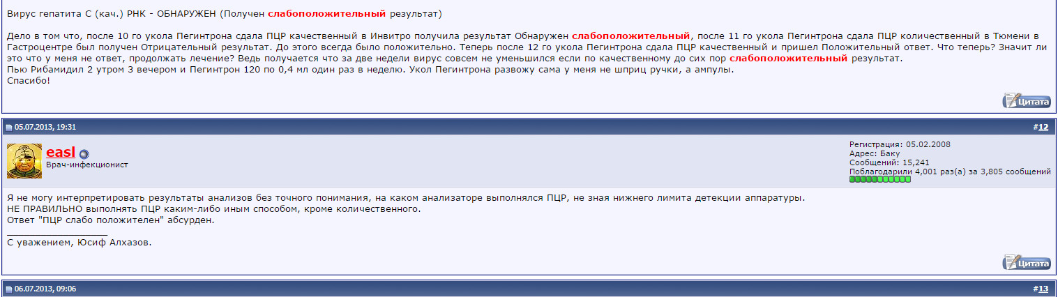 вас с удовольствием выслушают на осенней конференции EASLKlaus писал(а):По достигнутому результату на этом сроке (хотя бы преодолеть барьер в 60 МЕ/мл качественной ПЦР) уже и суетиться тем, кто не попал в ряды 95% - сдавать количество и выяснять, сколько его осталось.