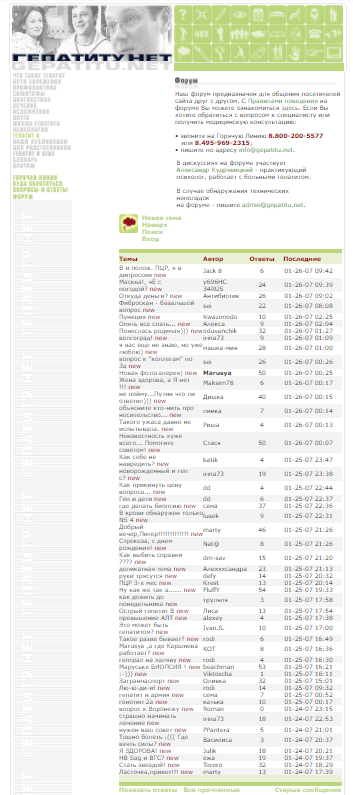 Можно, я немного пролью свет на объект обcуждения? Раньше сайт и форум "Гепатиту - нет" принадлежал российскому филиалу компании "Рош", целью существования сайта было продвижение препаратов этой компании. На форуме присутствовала жёсткая цензура в лице упомянутого одмина и его внештатных модераторов. По всем вопросам касаемо лечения нужно было обращаться исключительно на "горячую линию", где всех любопытных ожидала неминуемая терапия "Пегасисом". Так как на то время кроме упомянутого форума, был только "форум на остановке", где на тот момент неугодных также смело отправляли в "пешее эротическое путешествие", и был в 2009 году создан наш форум, где мы попытались создать дружескую домашнюю атмосферу. Ну а "гепатиту - нет", несмотря на рекламу по центральному ТВ, из самого известного в своё время сайта, после окончания эры интерферонов, стал попросту не нужен хозяевам и скорее всего, его продали новому владельцу. ИМХO, конечно.Pacha33 писал(а):администратора Алекса куда-то дели