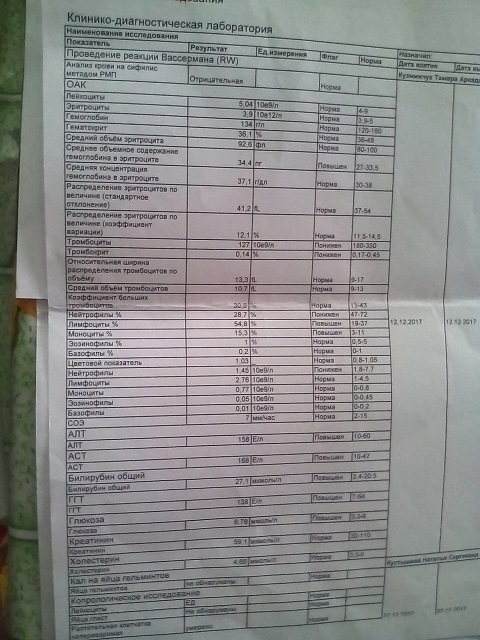 У меня на руках нет, все в норме, кроме алт АСТ и билирубина -27, тромбы ручным методом 221