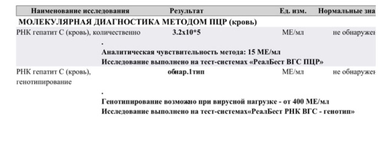 "5. РНК и генотип (1,2 и 3) гепатита С "