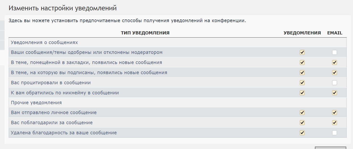 В связи с тем, что обновилось программное обеспечение форума, пользователям рекомендуется настроить уведомления. Уведомления на форуме могут отображаться на верхней панели (нав-баре) и приходить на электронную почту, указанную при регистрации. Зайти в настройки можно по ссылке (для зарегистрированных). Проверьте, пожалуйста, папку "спам" в почтовом клиенте или на почтовой странице. Если письма с форума попадают в неё, обязательно отметьте их как "не спам", чтобы продолжать получать уведомления.