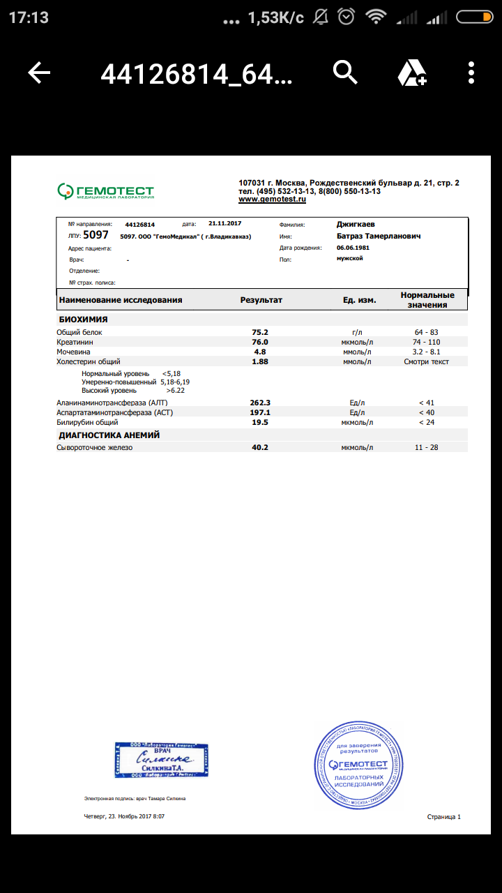 Вот результаты анализов до лечения и после