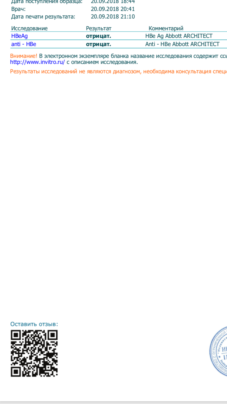 Потом когда КИ закончилось сдаю анализы 1 раз в год в поликлинике, чтобы бесплатно было. Один раз, 2 года назад они взяли у меня анализы и на Hbeag и анти... Я естественно был не против, если надо пусть берут, если бесплатно. Но за свои деньги я бы Hbeag и анти.. не сдавал бы. Кстати, что 16 лет назад, что 2 года назад, Hbeag и анти.. одинаковые :) И что-то мне подсказывает, если бы все 16 лет я сдавал бы из каждый год подряд, было бы тоже самое, только у меня в ящике, где лежат анализы, было бы лишних 14 бумажек с результатами Hbeag и анти..:))