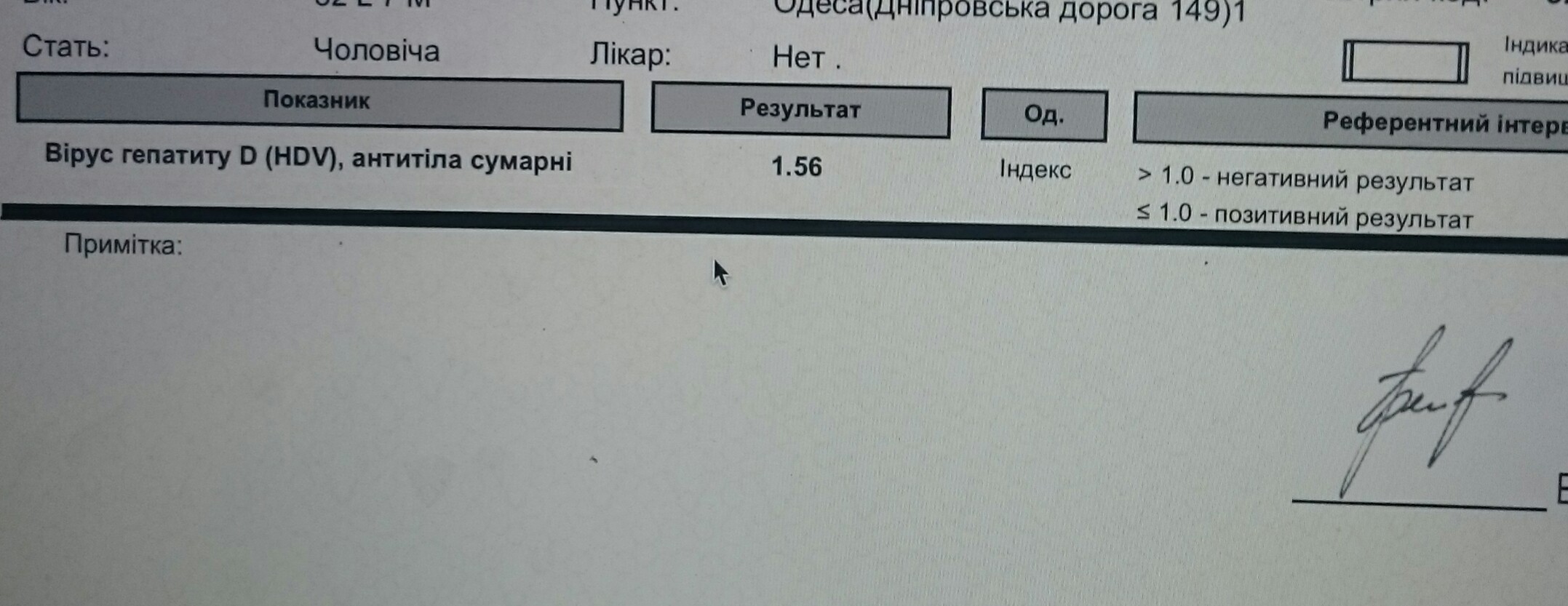 mrStrong, этот анализ не количественный, а качественный, и цифры в результате не имеют отношения к количеству антител. Результат вашего анализа 1,56. Из референсного интервала на бланке следует, что результат отрицательный, то есть антител к вирусу гепатита Д у вас нет. Значит, ваш организм никогда не сталкивался с этим вирусом, вы здоровы в этом плане.