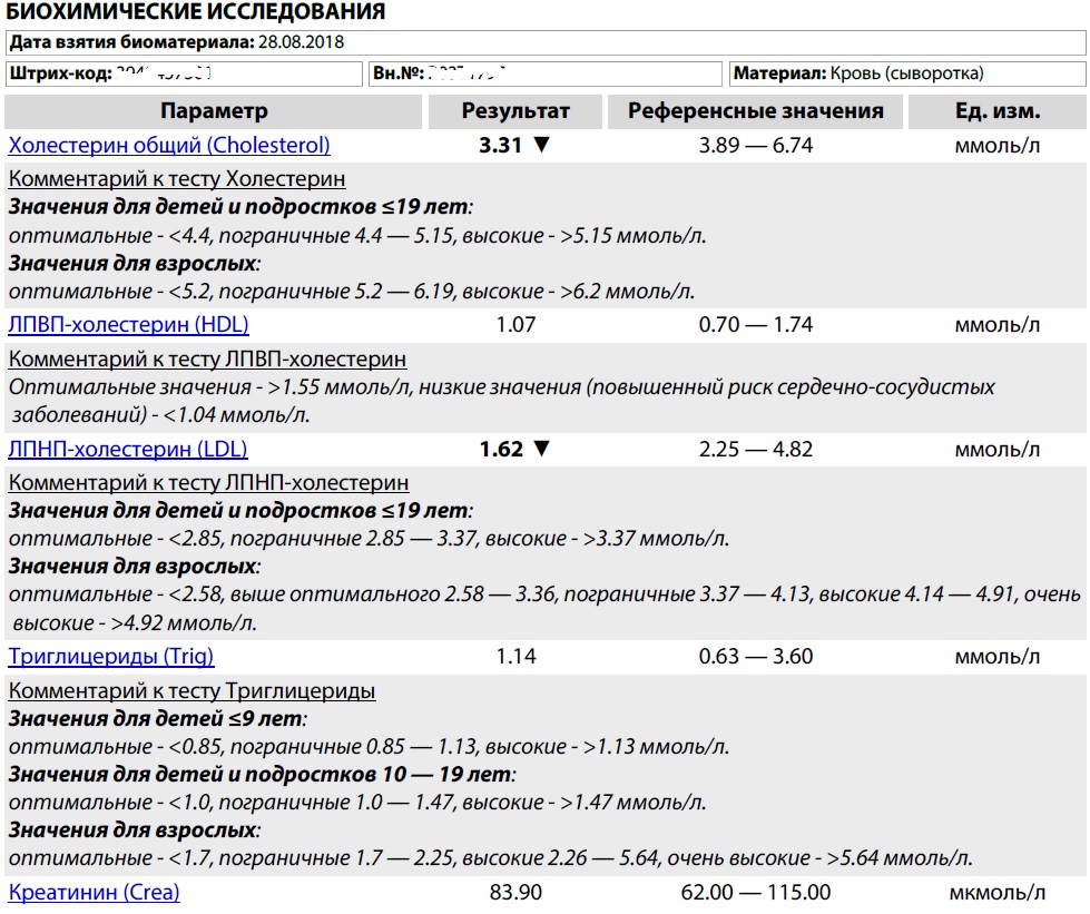 А вот, холестерин низковат. Ты, случайно, не вегетарианец? Или на жёсткой диете сидишь?