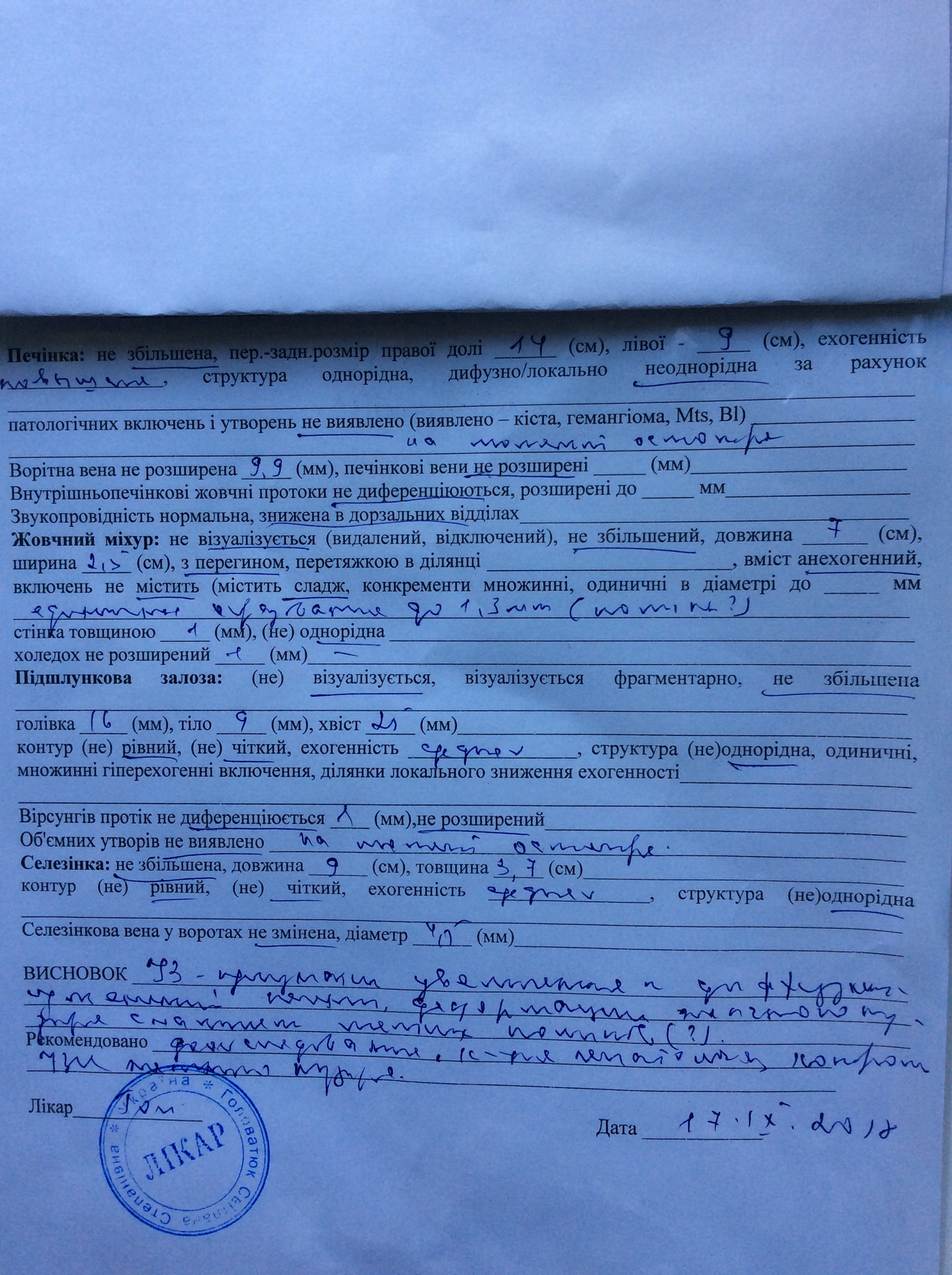 В заключении по УЗИ почерк несколько раз вывел меня из себя