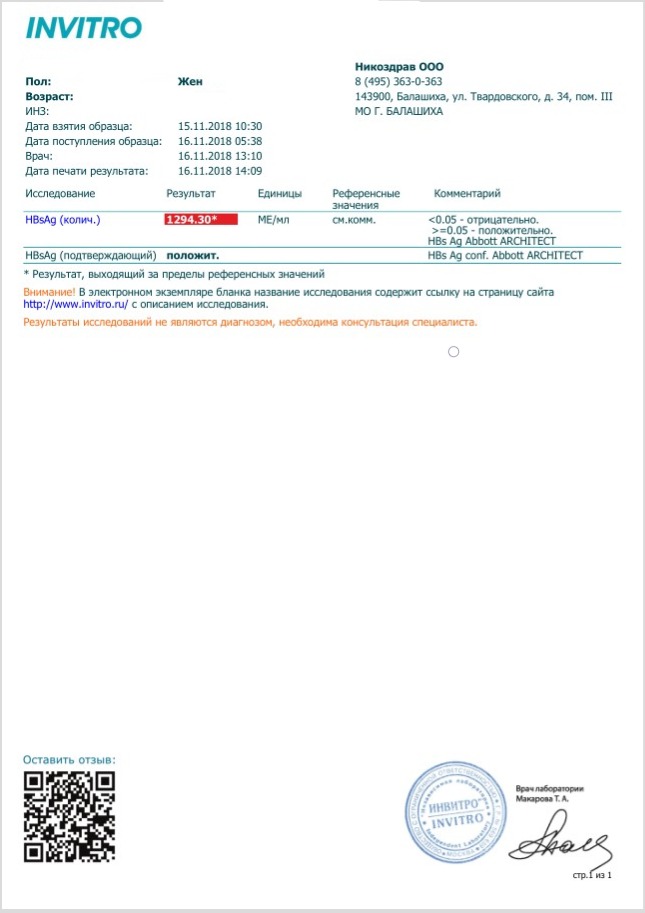 Ноябрь 2017 ПЦР ДНК 4.17Х10^6 ME/ml, Алт 52, HBsAg кол.1002МЕ/ml, F-1