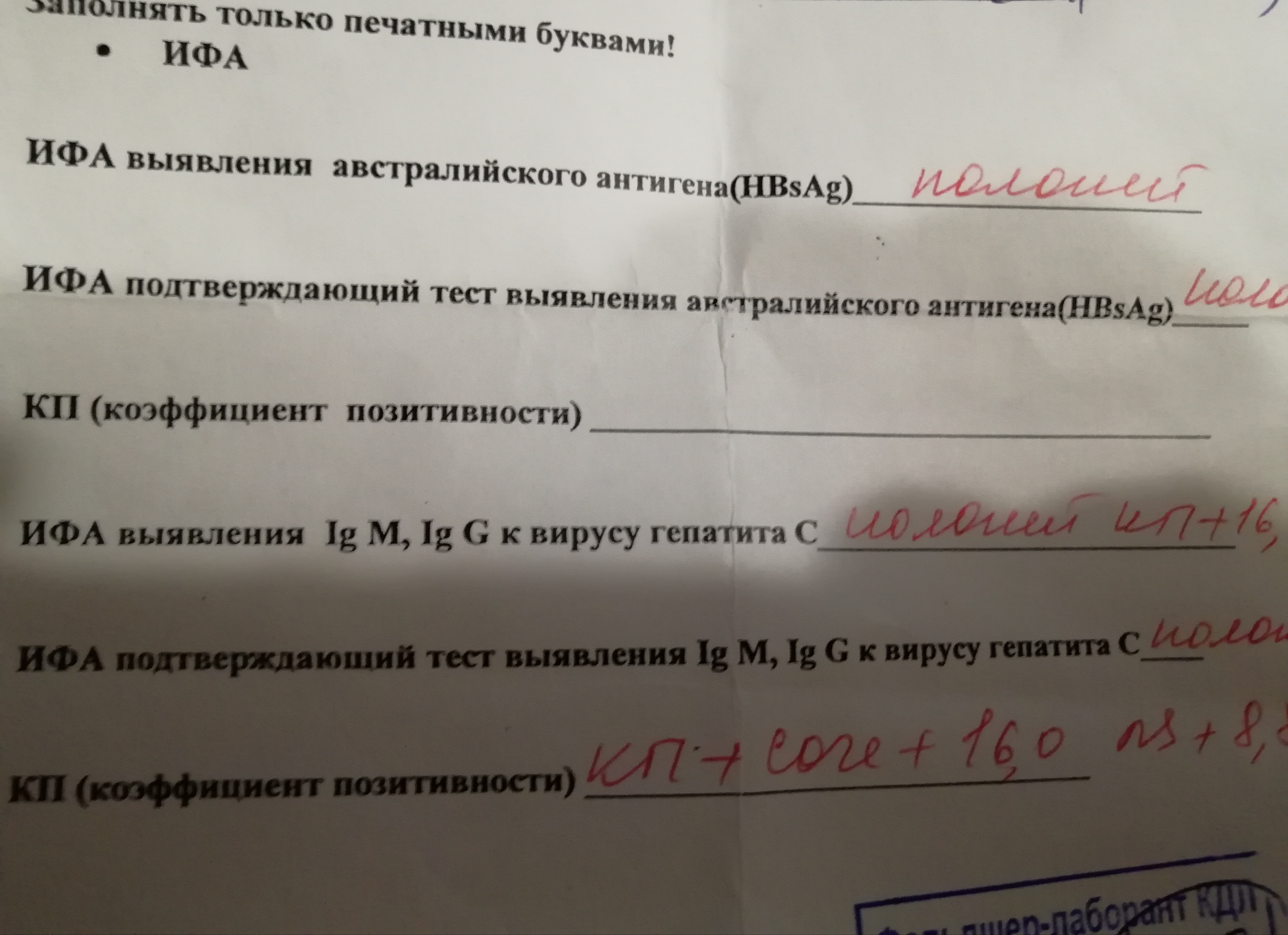 Сдавайте анализ ПЦР на наличие/ отсутствие РНК вируса гепатита С.