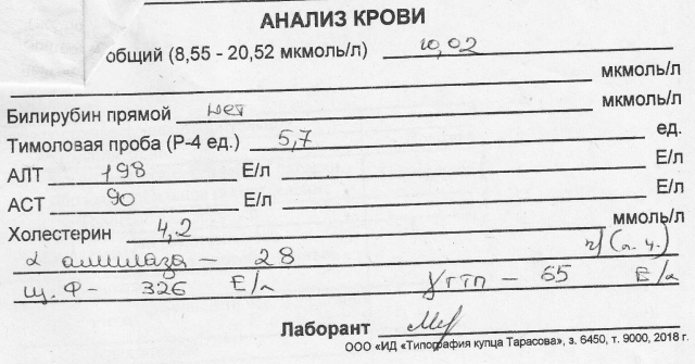 20.02.2019 АСТ-24, АЛТ-21, Бил.-16.8, тромбоциты 290 тыс.