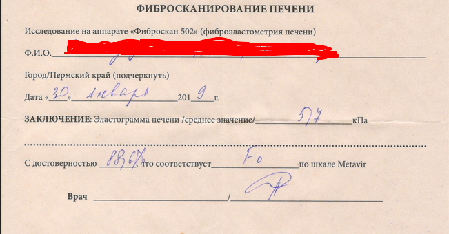 Фиброскан 23.01.2019 через 6 месяцев с 7.3 кПа F-2 до 4.3 кПа F-0