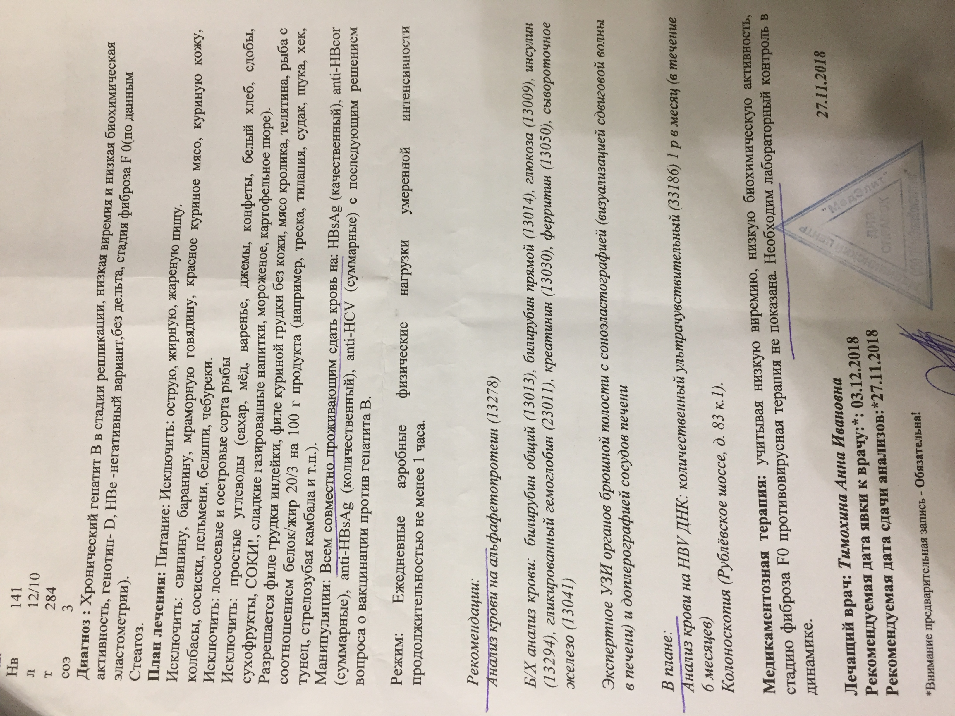 Геп. С., 1 ген., Ф-2 июль 2018 (7.3 кПа), 1,9/10*6 , АСТ-26, АЛТ-40 (перед ПВТ).