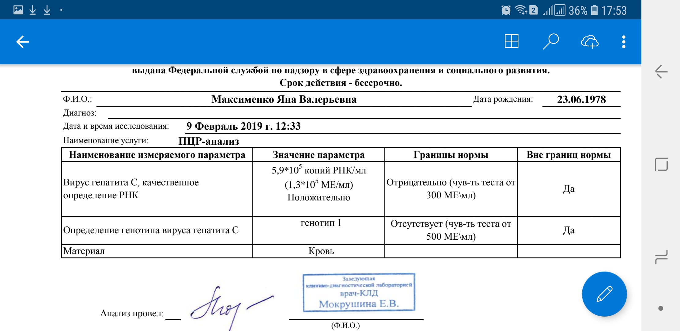 Биохимия хорошая, а ПЦР как будто старый результат выдали.