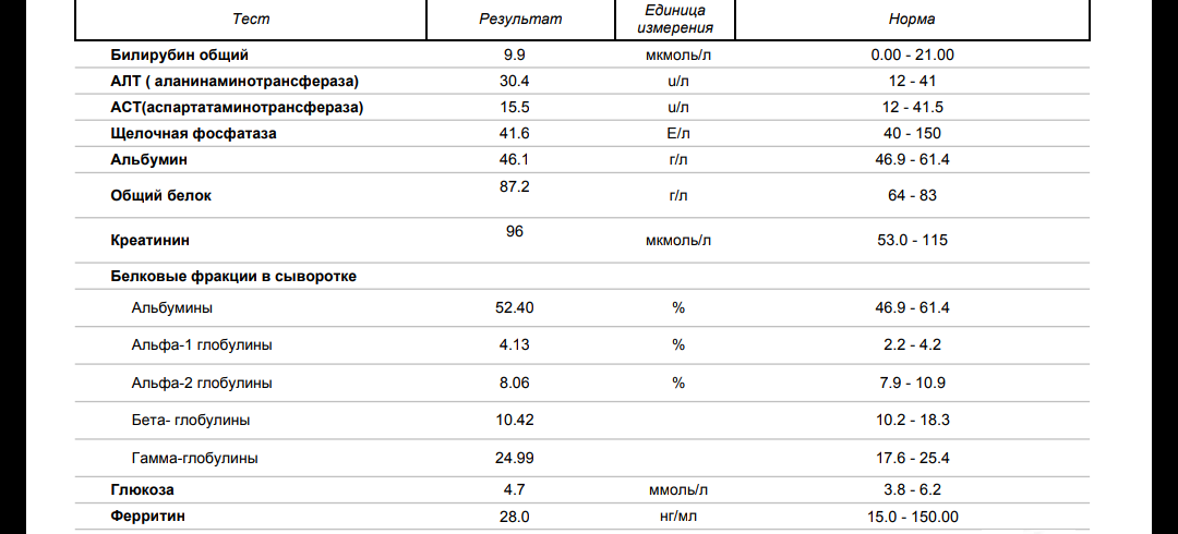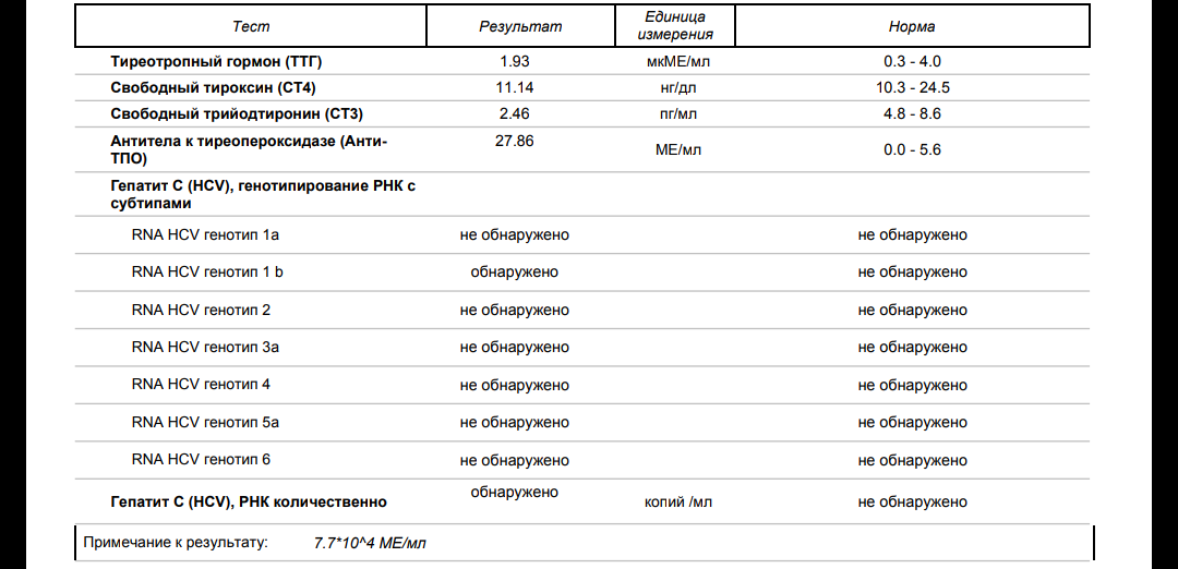 Результаты анализов, для гепатитчика, можно сказать, отличные. Фиброз нулевой.