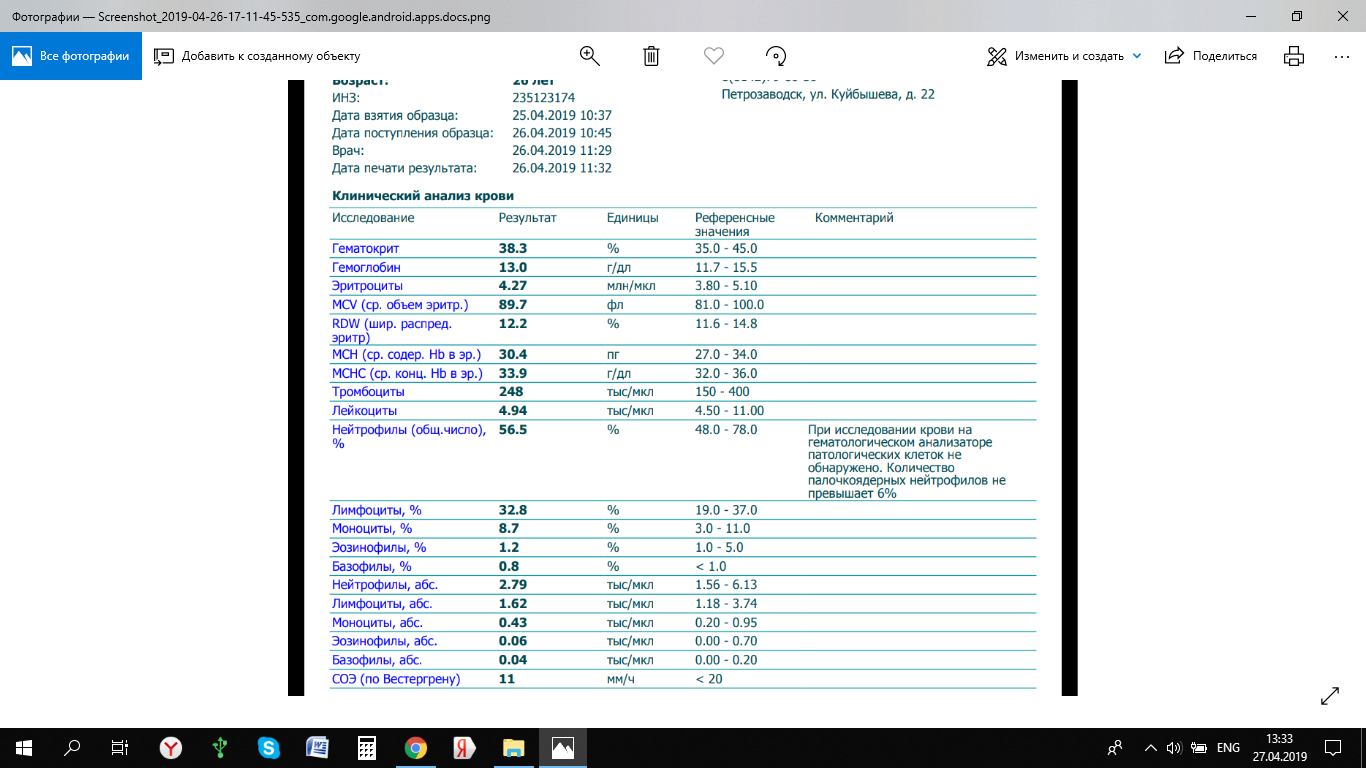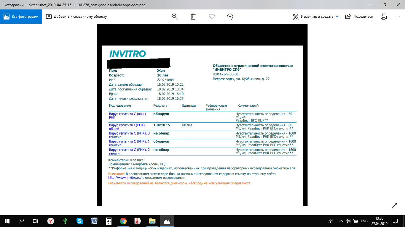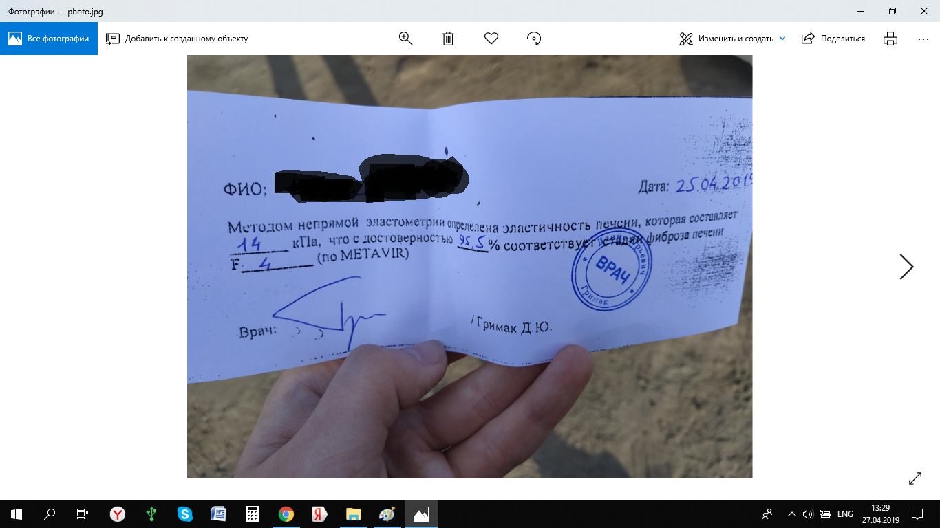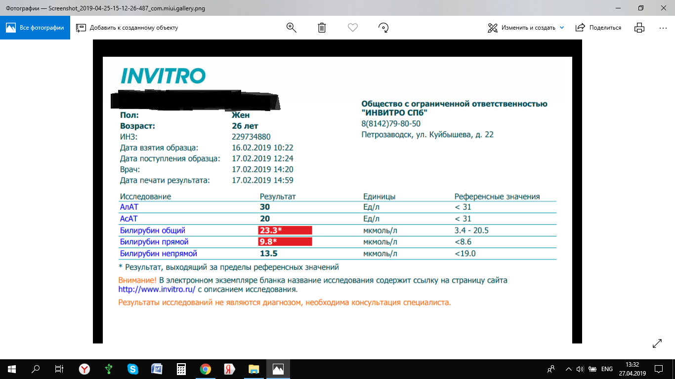 Вот анализы мои на данный момент: сдавала всё в Инвитро. Написала Бурневичу на почту. Он сказал предоставить ему все анализы. Потом может подскажет, что делать. Фиброскан медотом эластометрии один единственный в Петрозаводске.