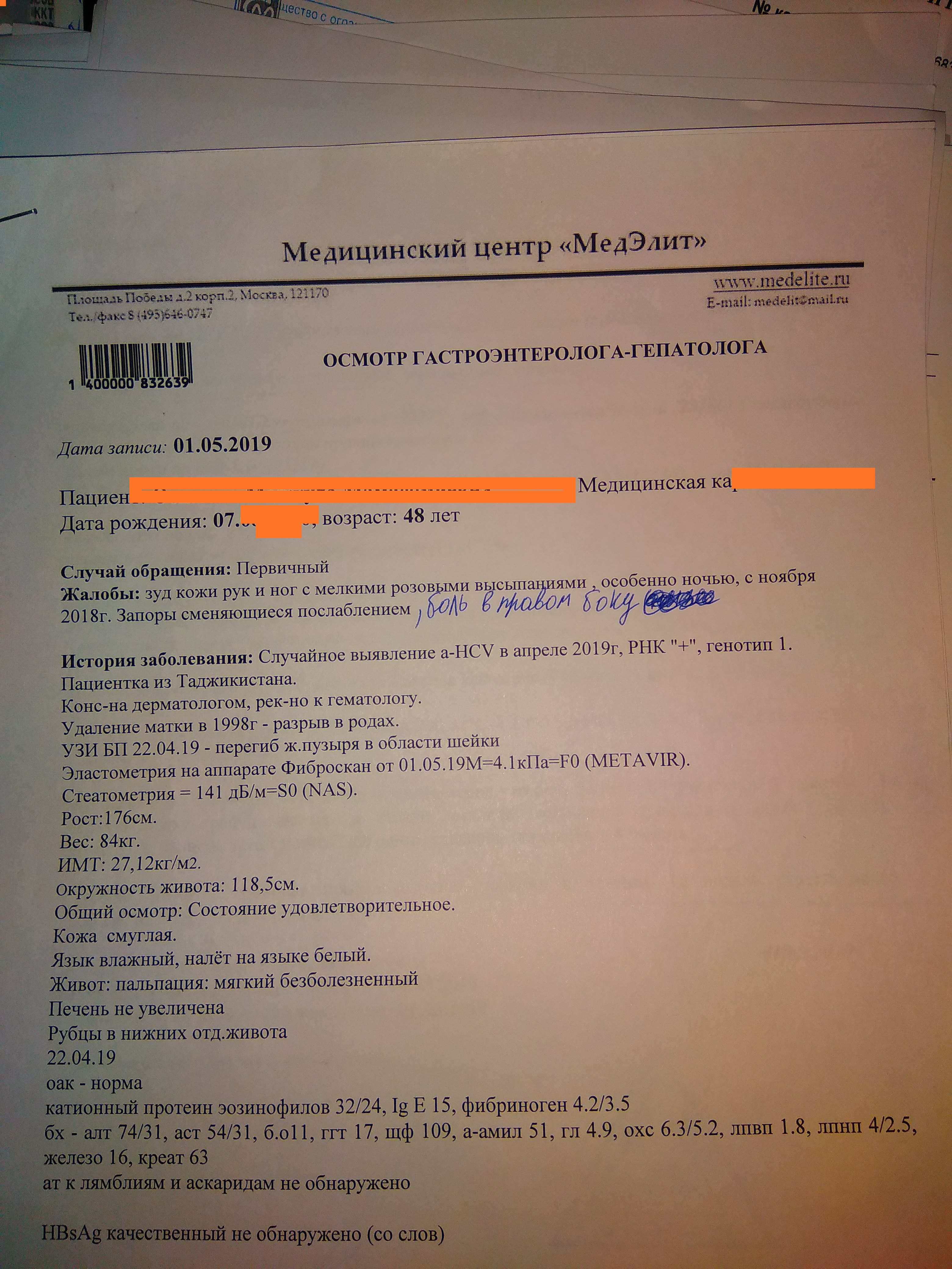 Вложу историю болезни. Беспокоит зуд кожи на руках и на ногох , иногда весь тело словно иголками кто то колит . И еще синяки на ногах и руках появляются и исчезают через 3-4 дня . Болит правый бок снизу . Сдавали анализ на гепатит с . Результат положительный генотип 1 . Но фиброскан показал фиброз 0 стадию . Вопрос может ли быть все это из- за гепатита с ? Переливание крови было 1998 году и 2012 годах . Но зуд и синяки начались ноябре 2018 года. Сдавали еще на ферритин показал 241 . Все анализы во вложении. Какие анализы еще сдать ? Врач сказала что зуд идёт из-за аллергии так как повышены эозинофилы. Как их понизить чтобы зуда и синяков не было . Боюсь что гепатит вылечу но зуд останется ((