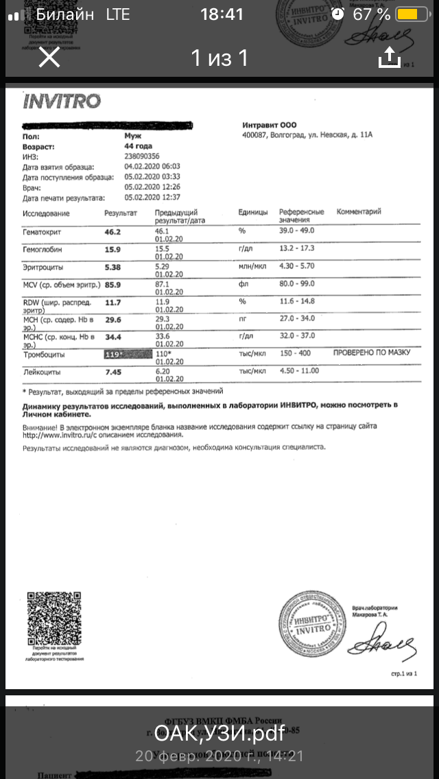 ОАК - все в норме кроме тромбоцитов (119)