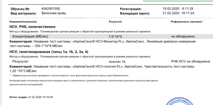 Геп С. Генотип 1. Старт 05.07.19 Соф Дак. 4 недели - не обнаружено. УВО 20!