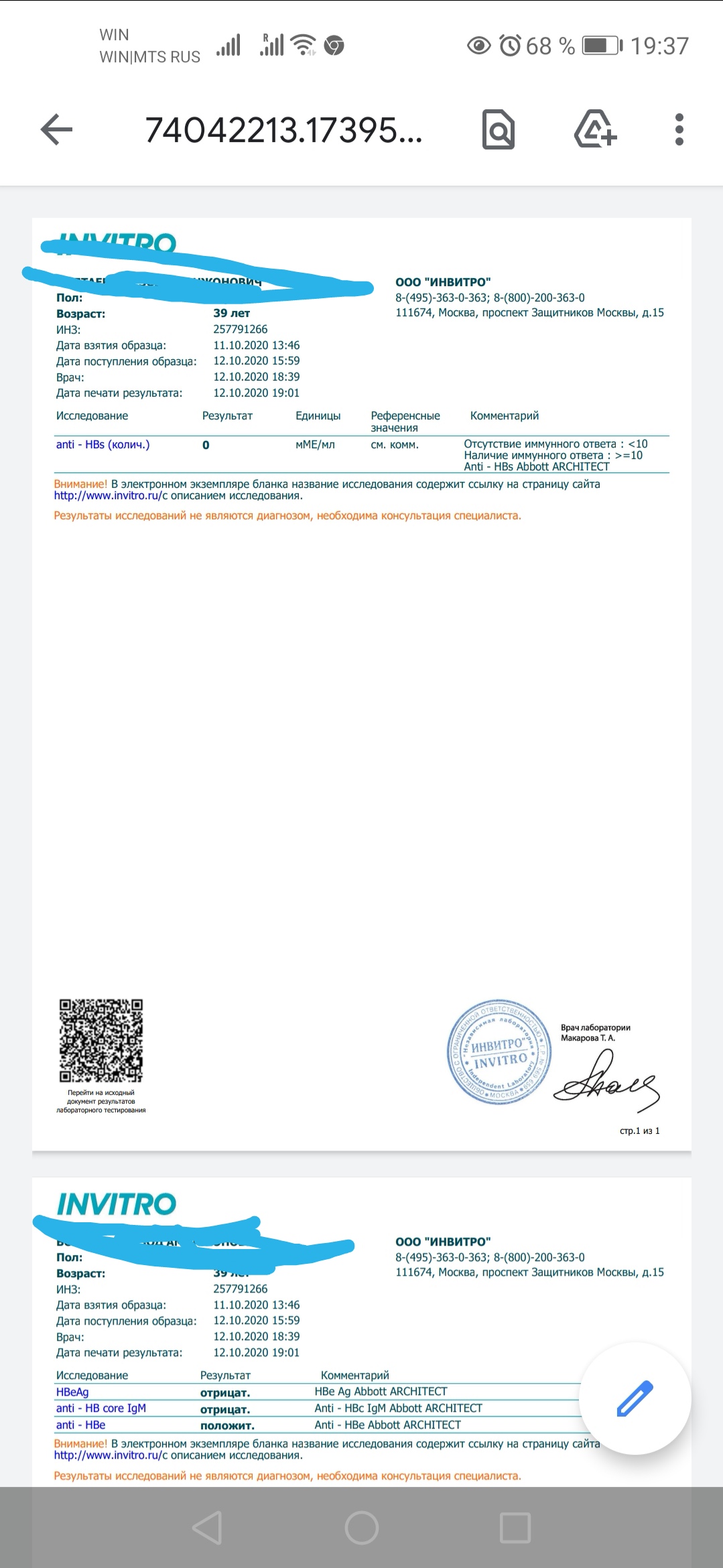 Он предложил мне расстаться с ним из за его болезни. Я отказалась. В итоге ему назначили ещё ряд анализов на генотип, АПФ, антиген количественный и снова всю биохимю т. к анализа крови уже месяц. Анализы прилагаю. Пожалуйста помогите понять насколько можно доверять фиброскану?