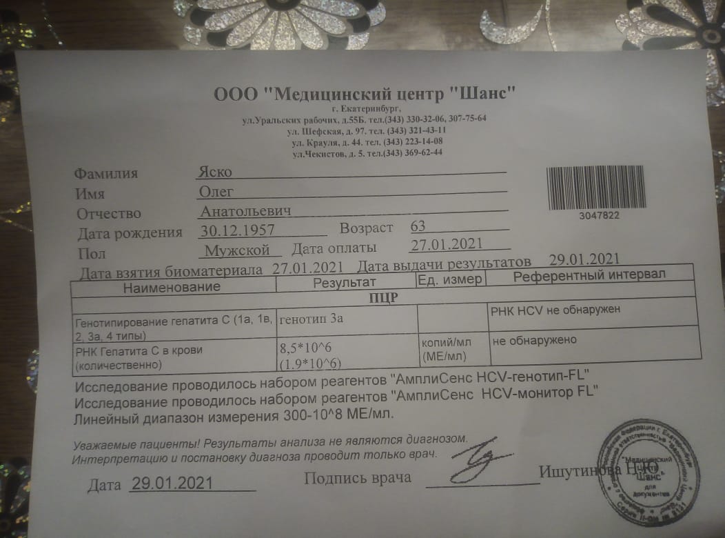 Покажите скан (фотку) анализа крови РНК ВГС методом ПЦР, пожалуйста. Личные данные затирайте.