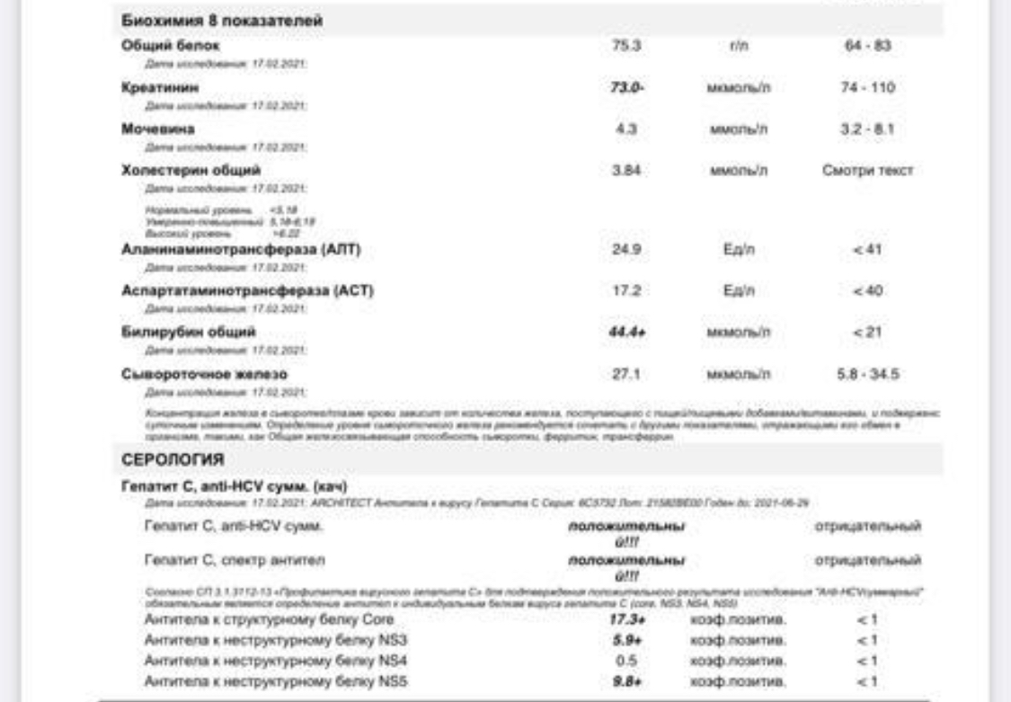 Дело в том, что такие сдавали все года, и был минус. А сейчас положительный стал.Vitek писал(а): ↑18 фев 2021 10:28 Lenok14011, вы сдали анализы на антитела к гепСу. Они практически всегда остаются положительными на всю жизнь, даже после излечения.