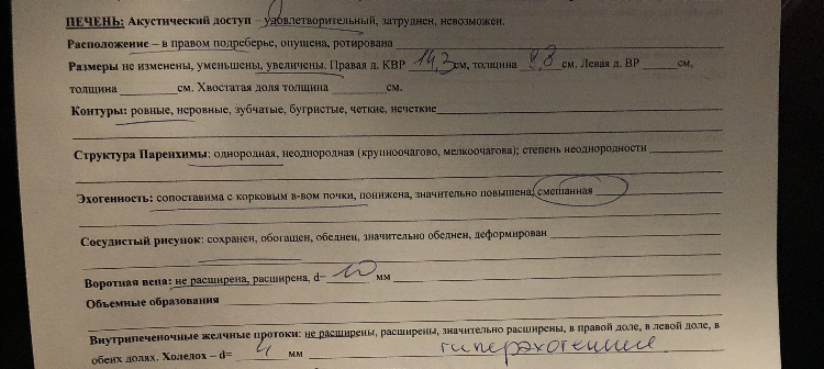 Узи- жировой гипотоз? Печень увеличена (правая доля КВР-14,3, толщина 8,8)