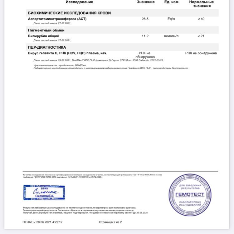 Дней через 10 заглянув на СПК штамп в паспорт поставили, но сказали что я больше к ним не ходок :gram: так как у меня ложноположительный анализ на геп и дорога моя теперь лежит к инфекционисту. Посетив врача меня успокоили мол это всё лечится и тем более Крым попадает под какую-то программу обеспечения лекарствами, дальше были анализы-генотип 3А, эластометрия-F1 и путь на гепатокомиссию в Симферополе (август 2020)