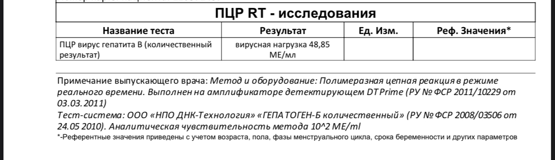 ПЦР вируса гепатита В - 48,85 МЕ/мл (09/04/21)