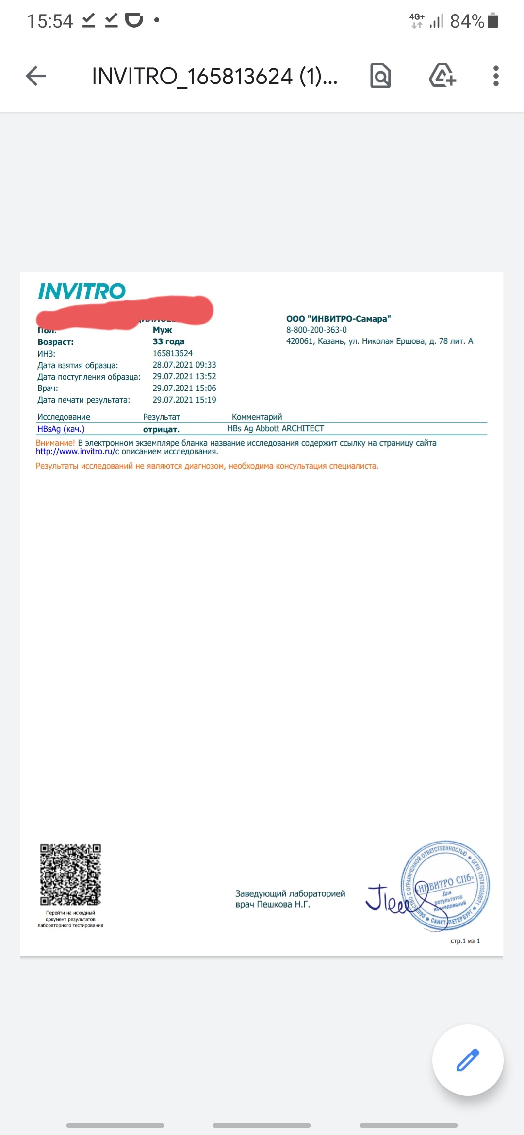 Здравствуйте сдал на все 4 анализа первый анализ готов помогите разобраться пожалуйста что это значит?